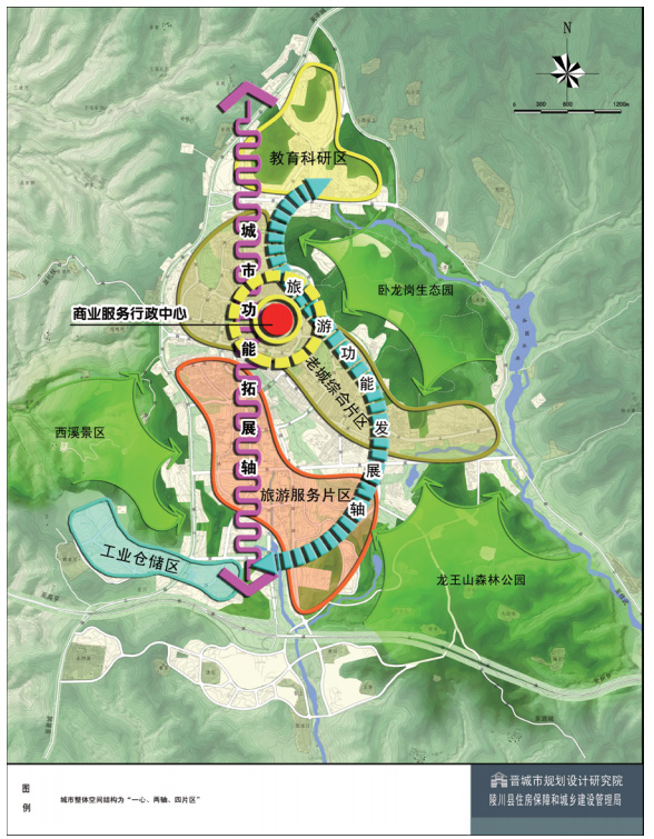 陵川縣位于太行山南麓,生態(tài)環(huán)境良好,風(fēng)光秀美,景色宜人。規(guī)劃提出了以旅游和中藥材為支柱產(chǎn)業(yè),完善道路交通及區(qū)域基礎(chǔ)設(shè)施的服務(wù)能力,積極發(fā)展旅游三產(chǎn)服務(wù)業(yè)的發(fā)展思路。確定了“休閑度假生態(tài)旅游型服務(wù)城市”的城市性質(zhì),以生態(tài)為基礎(chǔ),以旅游服務(wù)為特色,不貪大求洋,重在品質(zhì)提升,打造“小而精”的太行山地城市。在建設(shè)中要體現(xiàn)自然和諧、生態(tài)宜居的精致縣城發(fā)展思路,打造“山環(huán)城、城依嶺、居隨勢(shì)、樓掩翠、水潤(rùn)川”的特色景觀風(fēng)貌。
