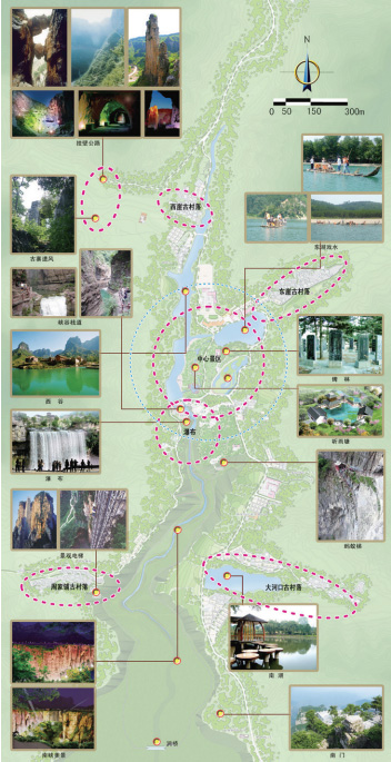 規(guī)劃合理解決了新農(nóng)村建設(shè)和旅游開發(fā)的矛盾,協(xié)調(diào)了錫崖溝村與景區(qū)之間的利益沖突,為錫崖溝風(fēng)景區(qū)和村莊建設(shè)繪制了美好的發(fā)展藍(lán)圖。規(guī)劃提出了“錫崖溝:鬼斧神工、太行天坑、世外桃源、現(xiàn)代愚公”的主題形象定位,根據(jù)旅游區(qū)資源和開發(fā)現(xiàn)狀,充分考慮旅游區(qū)功能完善和旅游發(fā)展的需要,將錫崖溝風(fēng)景區(qū)規(guī)劃為太行古村、南峽美景、南湖戲水、錫崖大瀑布、桃花塢、東湖親水、西谷觀景、古寨遺風(fēng)、北掛奇觀、北入口景觀、南入口服務(wù)區(qū)十一個(gè)功能分區(qū)。